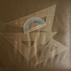 Drafting and drawing tools: Triangles, French Curves, Architect Scale Ruler, Protracter, Lettering Guide, Spirule, various templates.
