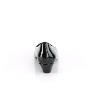 1 1/4" Block High Heel Shoes. Classic Pump with Tricot Linings. Vegan Black Patent Leather.