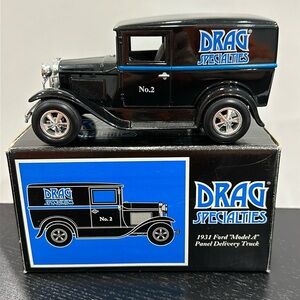 Drag Specialties Vintage Model Car Ford Model A Coin Bank. Comes in original box. Please refer to photos for exact size and condition.