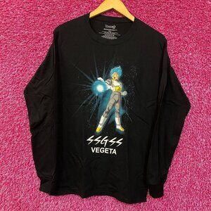 Dragon Ball Super SSGSS Vegeta Long Sleeve T-Shirt Small. Generally measures 18 inches pit to pit and 28 inches long. Amazing graphic design shirt, perfect for Dragon Ball Super fans. New never worn overstock in great condition.