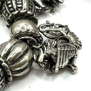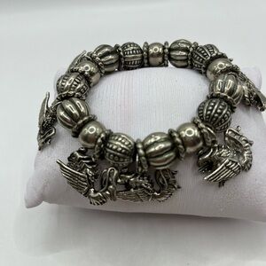 Dragon Charm Bracelet Stretch MJ Enterprises 80s Dark Silver Tone Vintage 8”