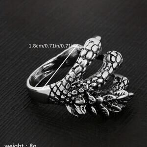 925 Sterling Silver Plated Dragon Claw Silver Ring Adjustable Demon Hand Halloween Cosplay Birthday Gift - NEW!!