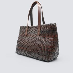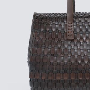 Dragon Diffusion Borsa Salvage Dark Brown The "Salvage" offers a unique aesthetic with its irregular, scale-like weave, making it a standout piece for any wardrobe. This shoulder bag is crafted for convenience and style, featuring an inner lining for added durability and a magnetic button closure to secure your belongings. Handwoven Basket Buffalo Calf Leather With lining Dimensions: • Width: 13.77in / 35cm • Length: 9.84in / 25cm • Depth: 4.72in / 12cm
