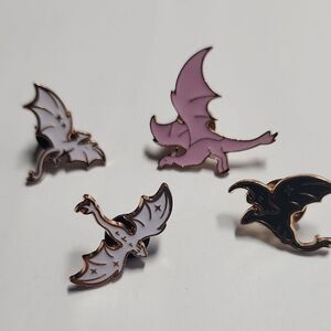 Set of dragon enamel pins in pink, black, and white. Perfect for adding a mythical touch to your accessories.