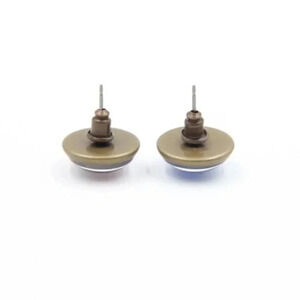 Dragon Eye Green Yellow Glass Cabochon Round Antique Bronze Stud Earrings