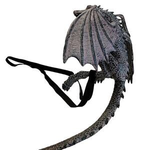 Dragon Figure 29" Long Tail Gray Plastic Toy Mythical Gothic Halloween Decor