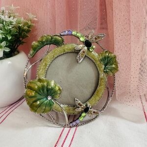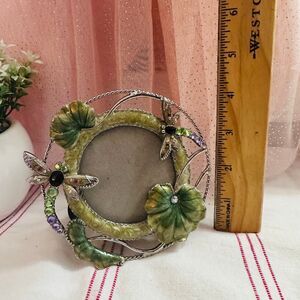 Vintage 90s Round Pewter Dragonfly Photoframe
