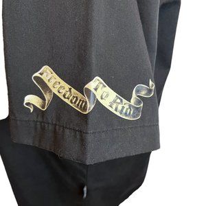 Dragon Fly Motorcycle Mens Black Button Up Shirt Free To Ride Size M. Buttons are metal and graphics are cool with USA American Theme. Please view the pictures and measurements thoroughly. Thanks for looking.