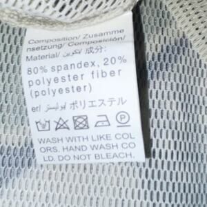 📸 Mesh fabric with striped cuffs and collar—see photos for texture and label details.