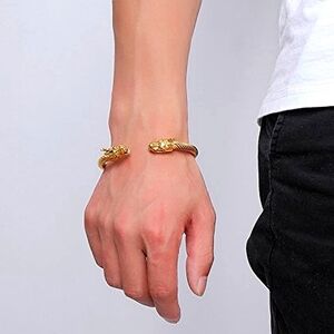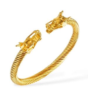 Gold Plated Dragon Head Viking Unisex Cuff Bangle Bracelet