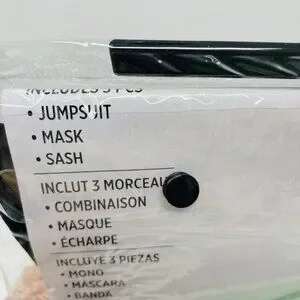 Listing includes 3 Pieces: Jumpsuit, Mask & Sash