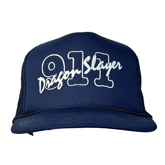 Dragon Slayer 911 Vintage Snapback Trucker Hat Blue Mesh 80s 90s Rope Cap NOS!