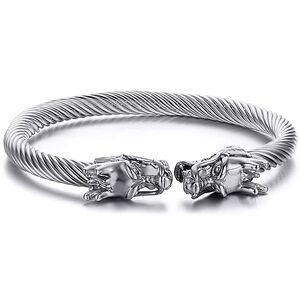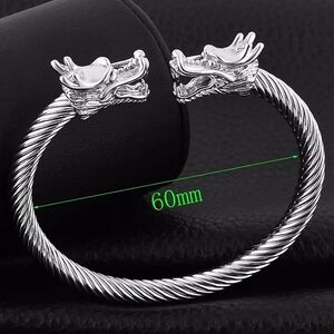 Dragon Viking Sterling Silver Plated Stainless Steel Bangle Cuff Bracelet