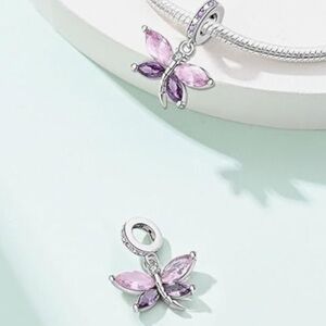 Dragon fly butterfly in purple and pink sterling silver fits all pandoras
