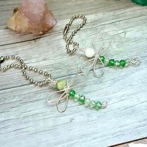 Stainless steel ball chain accented with gemstone beaded dragonfly