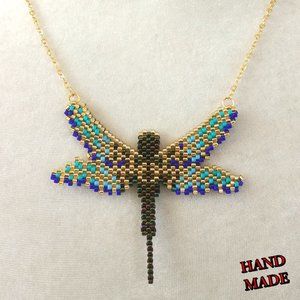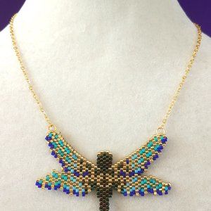 Dragonfly Beetle Miyuki Necklace Hand Made