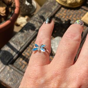 Dragonfly Blue Opal & Cz Sterling Silver Ring 5,6