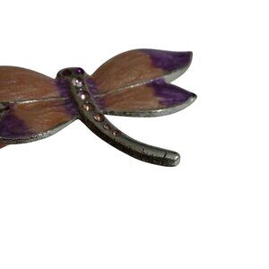 Dragonfly Brooch Pin With Rhinestones and Enamel Accents Purple Pink Silver Tone