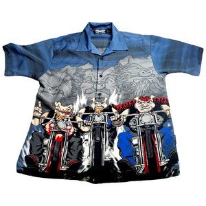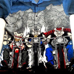 Dragonfly Clothing Company Men’s Short Sleeve Button Up Shirt S XL Hogs Flames