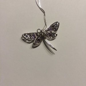 Beautiful Silver Dragonfly with Purple and Red Crystal Wings
