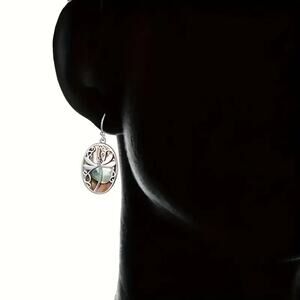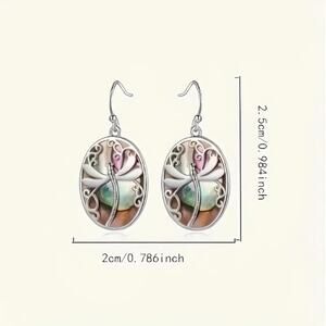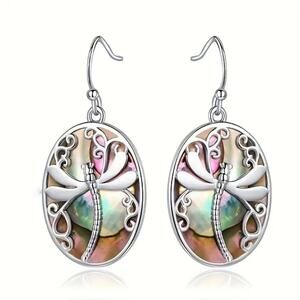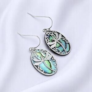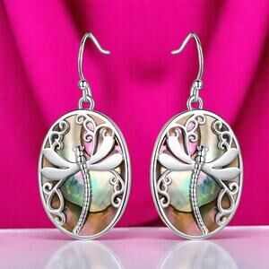 Dragonfly Dangle Earrings | Silver Shell Iridescent Bohemian Boho | New