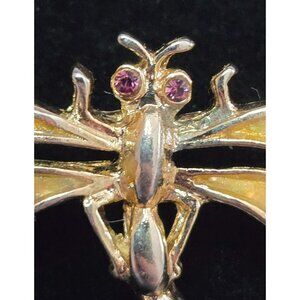 Dragonfly Enamel Goldtone Brooch Nature Insect Bugs