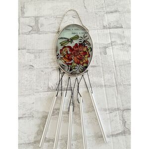 Dragonfly Floral Suncatcher Stained Glass Windchime Outdoor Decor Garden Patio