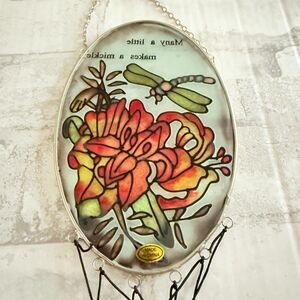 Add a touch of charm to your outdoor space with this dragonfly floral stained glass suncatcher windchime. Beautifully crafted, it catches the light and creates a calming, melodic sound with every breeze. Perfect for enhancing your garden, patio, or porch with vibrant colors and a peaceful ambiance.