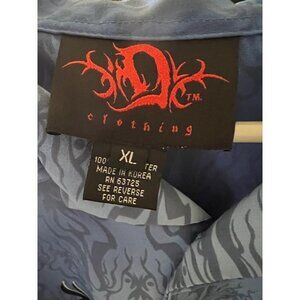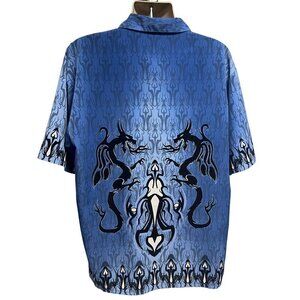 Dragonfly Mens Vintage Rockabilly Blue Dragons Flames All Over Print Button Front Shirt XL. Great Pre-Owned Vintage Condition Gently Worn. Ships from smoke free home.