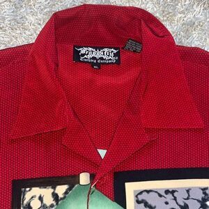 Dragonfly Mens Short Sleeve Button Down Shirt Poker Dogs Card Party XL Red Great Condition