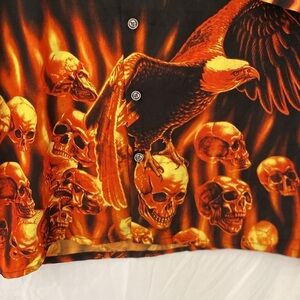 Dragonfly Men's Size XL fire skull eagle Shirt Black Short Sleeve Button