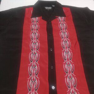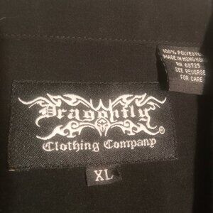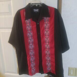 Dragonfly Men's Striped Embroidered Polyester Button Up Shirt XL Black/Red