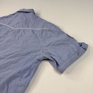 Dragonfly Mens Y2K Patched AOP Button Down Shirt Blue Stripe Pearl Snap Size L