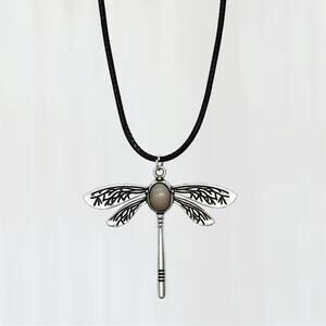 Dragonfly Pendant Vintage Style Silver Tone Nylon Cord Metal Clasp