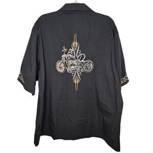 Dragonfly Roadhouse Embroidered Snap Button Up Motorcycle Shirt Short Sleeve 2XL
