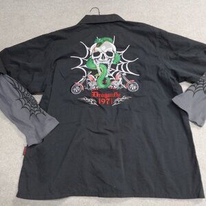 Dragonfly Shirt Black 2XL Button-Up With Roadhouse Spiderweb Sleeves