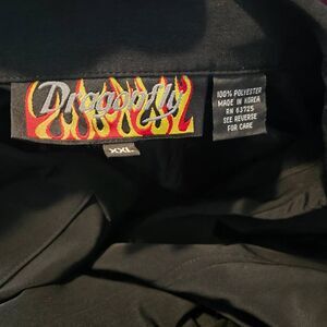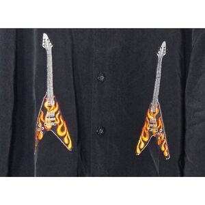 Dragonfly Shirt Men's Button Down Size XXL Black Guitar Flames Hard Rock
