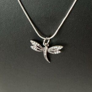 This dragonfly necklace features sparkling rhinestonesIts accents make it a standout piece for any occasion.