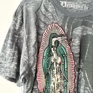 Dragonfly Vintage Grey Burnout Crew Neck Snakehead Religious Mary T Shirt Large