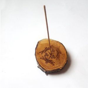 Dragonfly Wooden Incense Stick Holder Rustic Decor