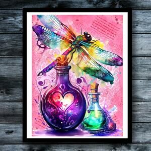Dragonfly and Magic Potion Love Spell Bright Whimsical Art Print