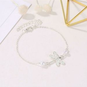 Dragonfly and Pearls Anklet Bracelet New