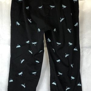 âDragonfly in Amber:â Women Black Capri w/Blue Dragonflies