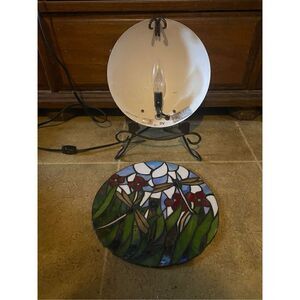 Dragonfly Floral Round Stain Leaded Glass Plate Lamp