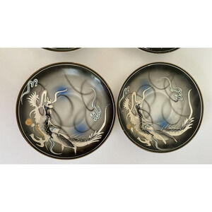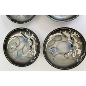 Dragonware Moriage Demitasse Saucers Black Gray Made in Japan 4 7/8”D