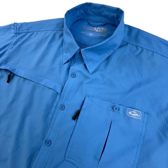 Drake DPF Performance Fishing Shirt Men's M Vented Mesh Button Down Short Sleeve