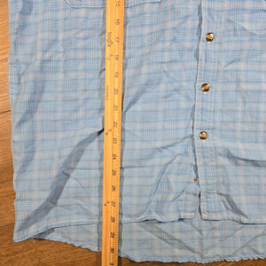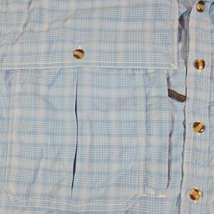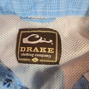 Drake Fishing Shirt Men’s Large Blue White Checkered Button Down Vented Outdoor
