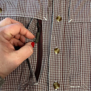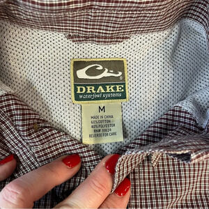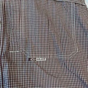 Drake Maroon white plaid short sleeve button down shirt size Medium