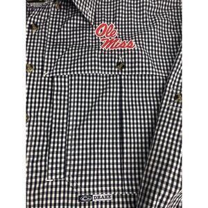 Drake Waterfowl Ole Miss Mens Shirt Outdoor Vented Long Sleeve Blue Plaid Medium