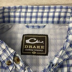 Drake Waterfowl Shirt Mens Small Blue Checkered Short Sleeve Vented Breathable